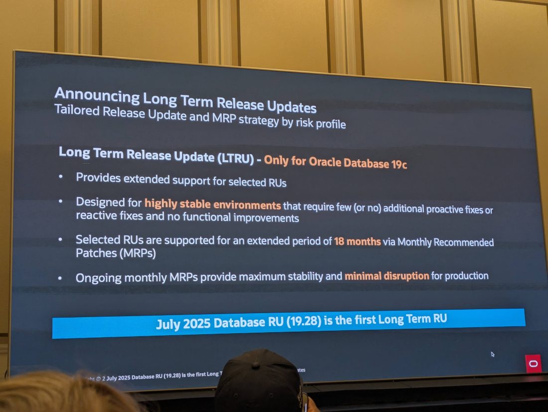 安定性を重視するユーザーにとって重要なのがこの仕組みです。特定の Release Update が長期サポートの対象となり、まずは RU 19.28 が対象になるとのアナウンスがありました。