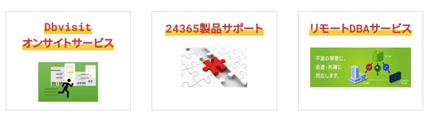 詳しくは Dbvisit環境構築サービス、Dbvisitオプションサービス をご参照ください。