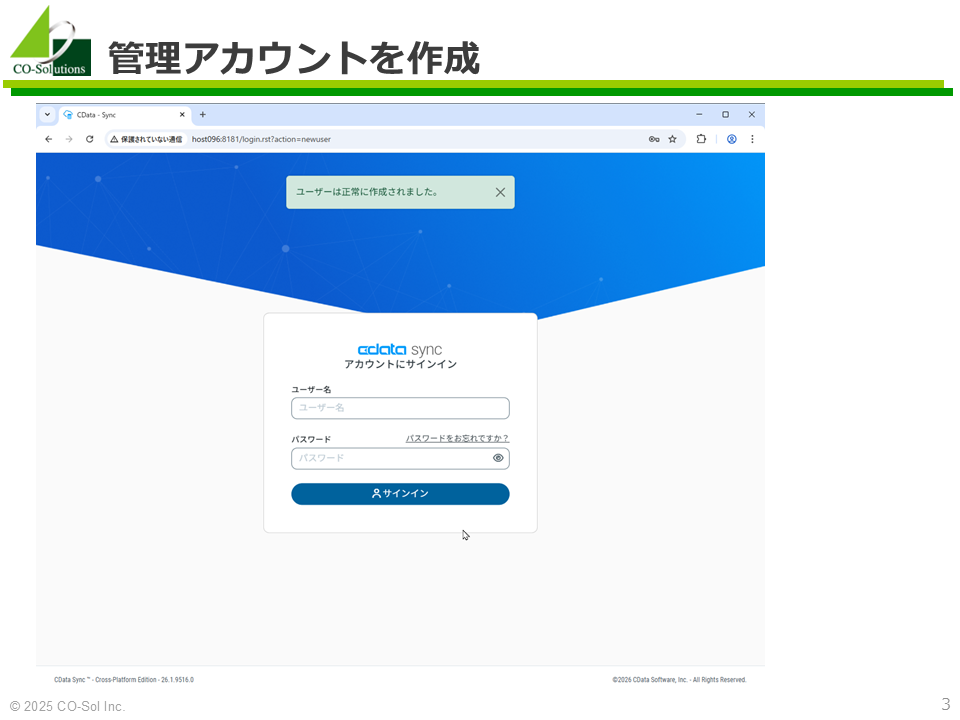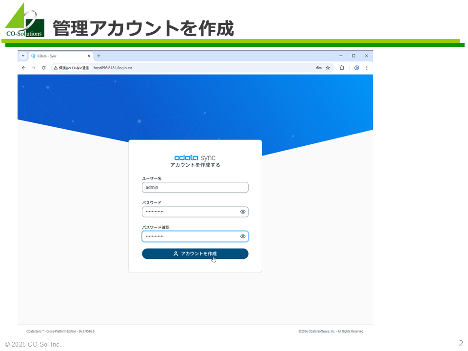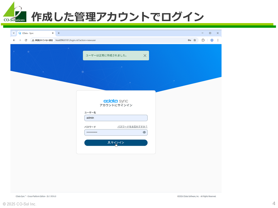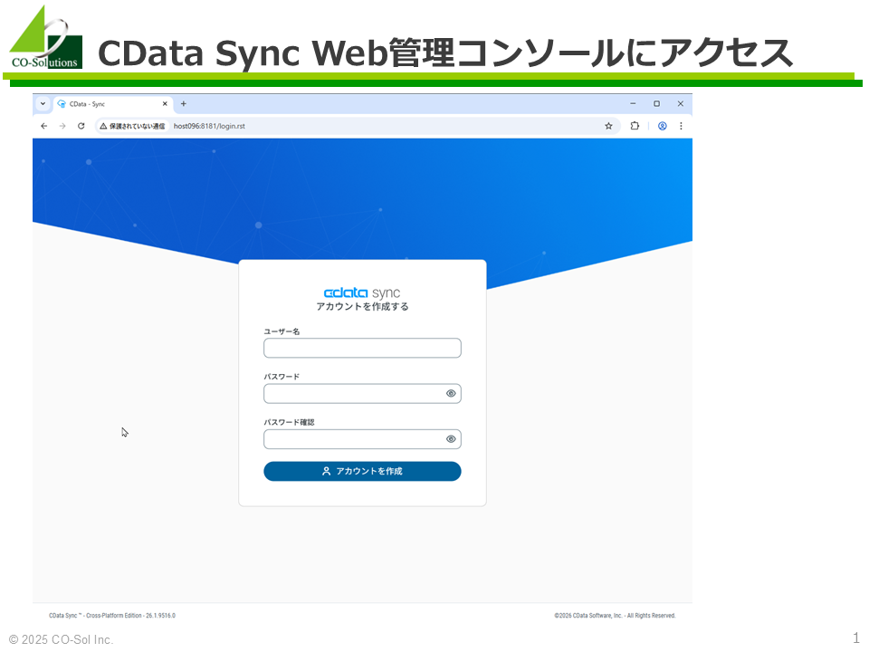 CData Sync Web管理コンソールにアクセスし、初期構成作業を実行する