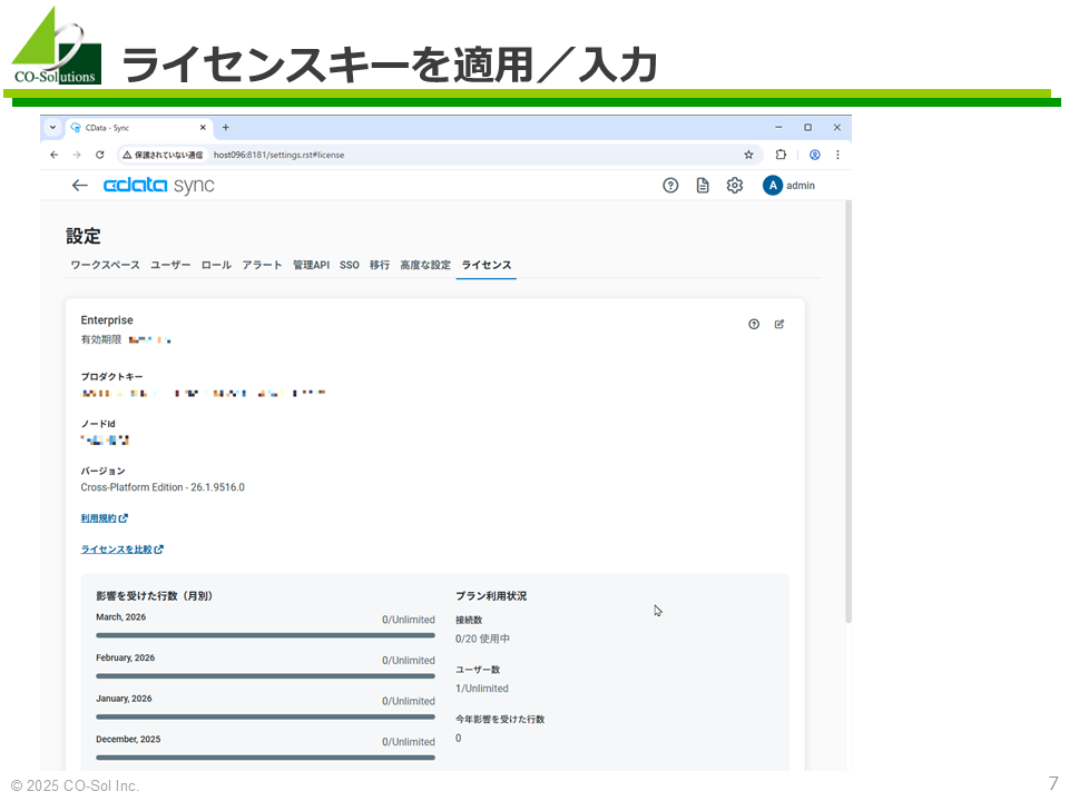 メール内の無償トライアル用ライセンスキーは、CData Syncインストール後に入力します。